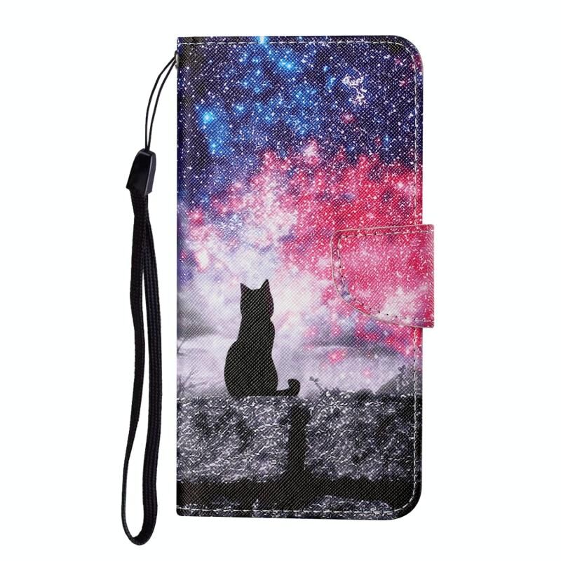 Θήκη δέρματος οριζόντιας αναδίπλωσης με σχέδιο πολύχρωμης ζωγραφικής για Xiaomi Mi Note 10 Lite με βάση στήριξης & υποδοχές καρτών & πορτοφόλι & κορδόνι (Κόκκινο)