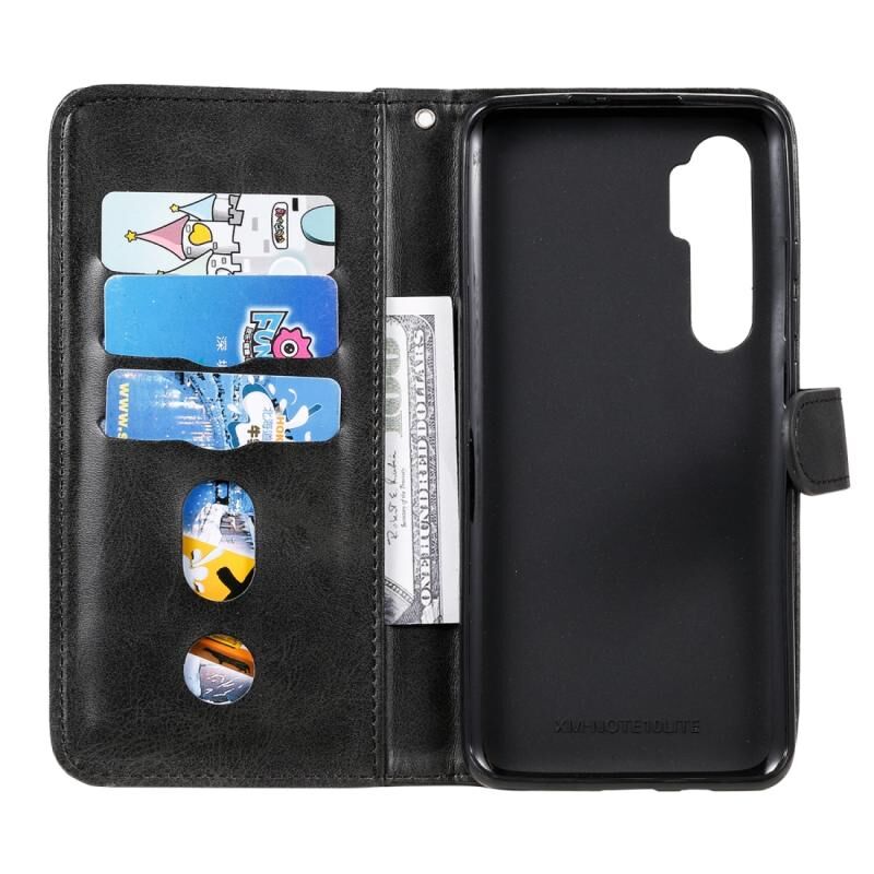 Για Xiaomi Mi Note 10 Lite Fashion Calf Texture φερμουάρ οριζόντια Flip δερμάτινη θήκη με Stand & υποδοχές για κάρτες & λειτουργία πορτοφολιού (μαύρο)