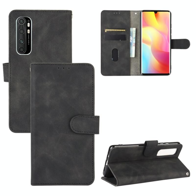 For Xiaomi Mi Note 10 Lite Solid Color Skin Feel Magnetic Buckle Horizontal Flip Calf Texture PU Leather Case with Holder & Card Slots & Wallet(Black)