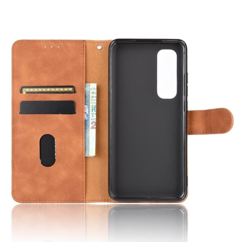 Για Xiaomi Mi Note 10 Lite Solid Color Skin Feel Μαγνητική πόρπη οριζόντια Flip μοσχάρι υφή PU δέρμα υπόθεση με κάτοχο & υποδοχές καρτών & πορτοφόλι (καφέ)