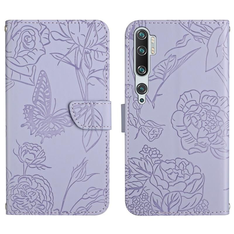 Θήκη τηλεφώνου από δέρμα με ανάγλυφο σχέδιο πεταλούδας και παιώνιας για Xiaomi Mi Note 10 / Note 10 Pro (Κόκκινο)