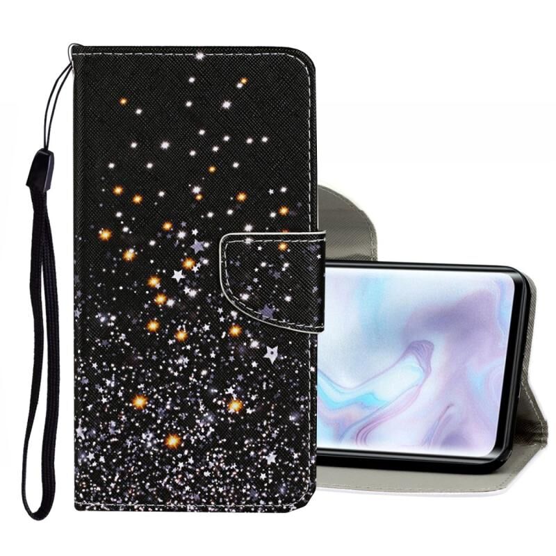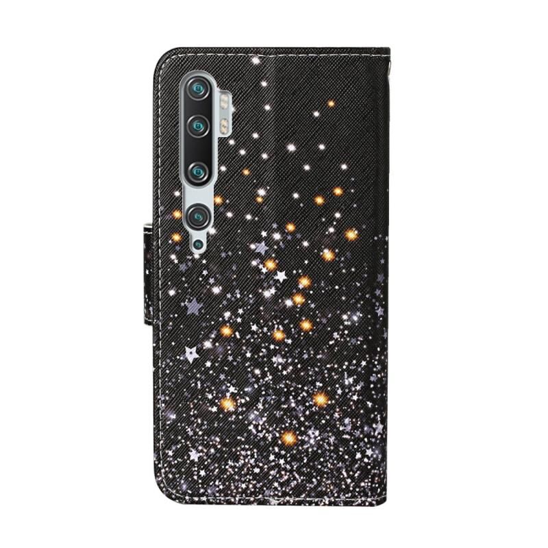 Θήκη δέρματος οριζόντιας αναδίπλωσης με σχέδιο πολύχρωμης ζωγραφικής για Xiaomi Mi Note 10 Pro με βάση & υποδοχές καρτών & πορτοφόλι (Μαύρο Αστέρι)