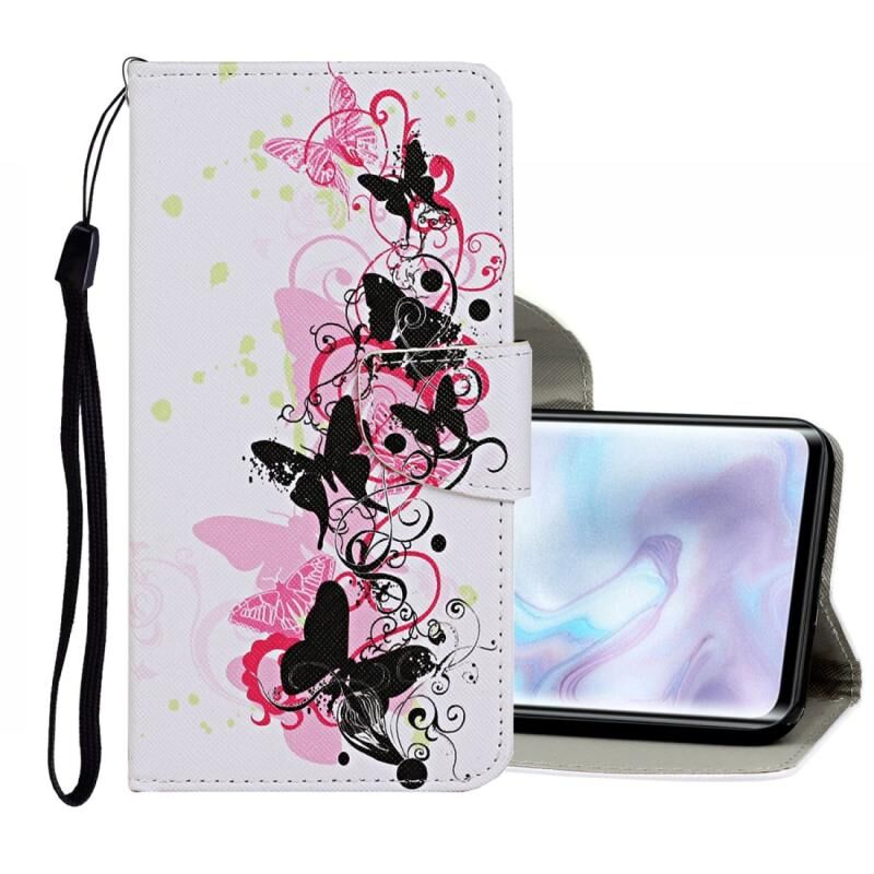Θήκη δέρματος οριζόντιας αναδίπλωσης με σχέδιο πολύχρωμης ζωγραφικής για Xiaomi Mi Note 10 Pro με βάση & υποδοχές καρτών & πορτοφόλι (Τέσσερα Πεταλούδες)