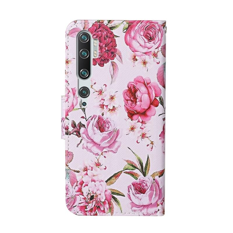 Θήκη δέρματος οριζόντιας αναδίπλωσης με σχέδιο πολύχρωμης ζωγραφικής για Xiaomi Mi Note 10 Pro με βάση στήριξης & υποδοχές καρτών & πορτοφόλι (Παιώνια)