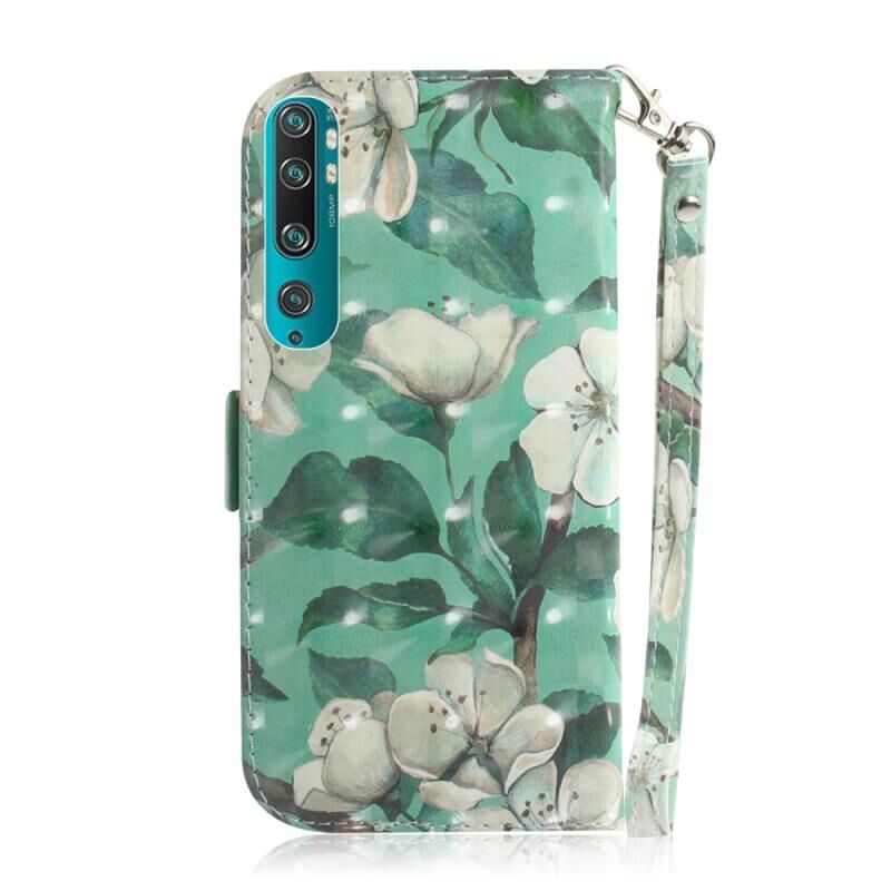 Θήκη δέρματος οριζόντιας αναδίπλωσης με σχέδιο 3D για Xiaomi Mi Note10 Pro με βάση στήριξης & υποδοχή κάρτας & πορτοφόλι & κορδόνι (υδατογραφικά λουλούδια)