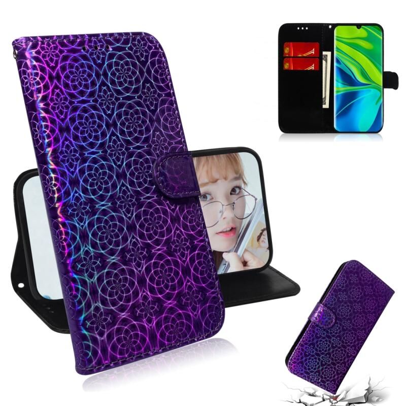Θήκη για Xiaomi Mi Note10 Pro, μονόχρωμη, πολύχρωμη, με μαγνητικό κούμπωμα, οριζόντια, από δερματίνη PU, με βάση στήριξης & θήκες για κάρτες & πορτοφόλι & κορδόνι (Μωβ)