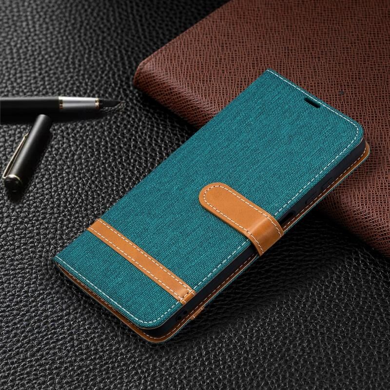 Για Xiaomi Mi Poco X3 Χρώμα Matching Denim Υφή δερμάτινη θήκη με θήκη & υποδοχές για κάρτες & πορτοφόλι & κορδόνι (πράσινο)