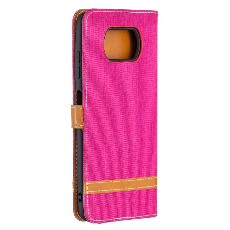 Για Xiaomi Mi Poco X3 Χρώμα Matching Denim Υφή δερμάτινη θήκη με θήκη & υποδοχές για κάρτες & πορτοφόλι & κορδόνι (Rose Red)
