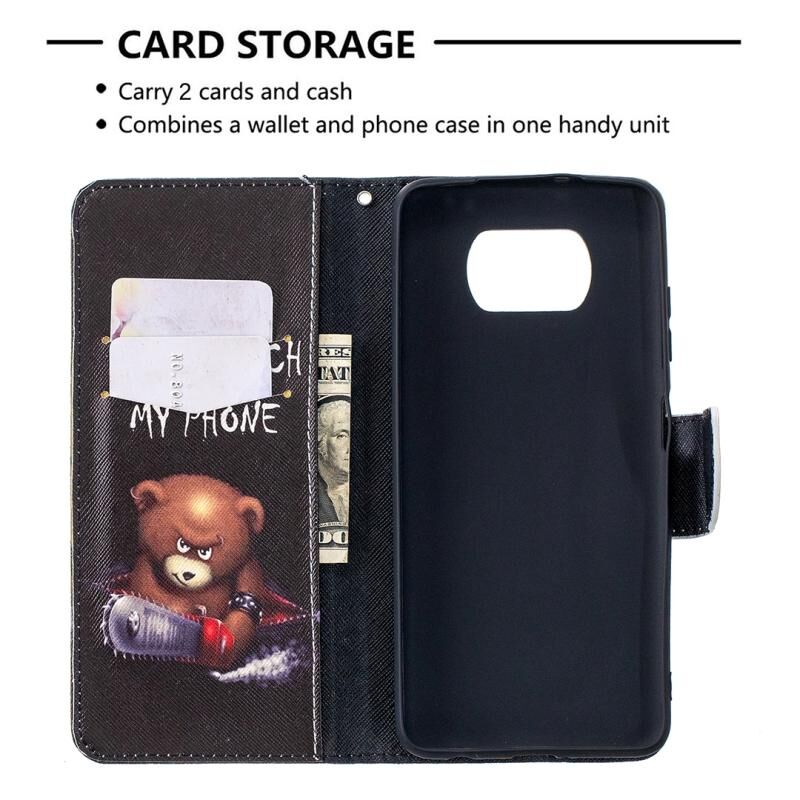 Θήκη δέρματος οριζόντιας αναδίπλωσης με σχέδια πολύχρωμης ζωγραφικής για Xiaomi Mi Poco X3 με βάση στήριξης & υποδοχές καρτών & πορτοφόλι (Αρκούδα)