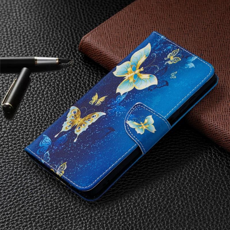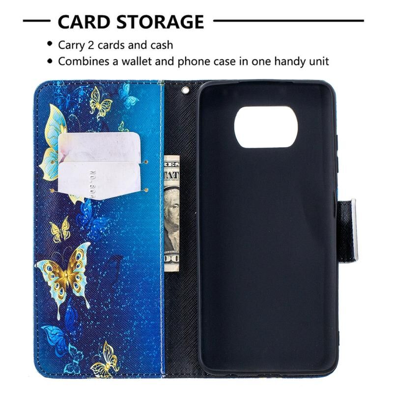 Θήκη δέρματος οριζόντιας αναδίπλωσης με σχέδια ζωγραφικής και χρώματα για Xiaomi Mi Poco X3 με βάση στήριξης & υποδοχές καρτών & πορτοφόλι (Μπλε Πεταλούδα)