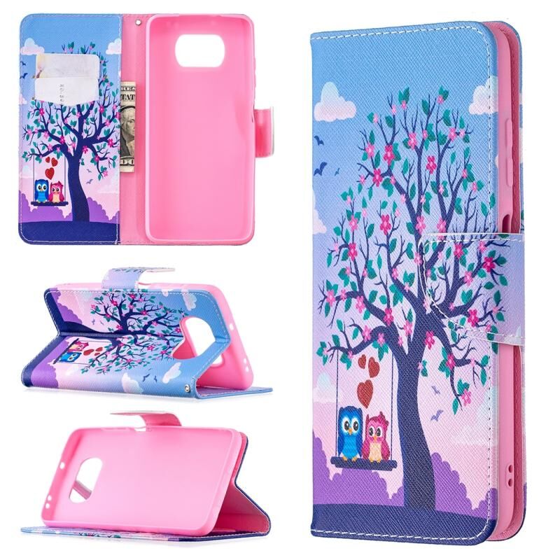 Θήκη δέρματος οριζόντιας αναδίπλωσης με σχέδια πολύχρωμης ζωγραφικής για Xiaomi Mi Poco X3 με βάση στήριξης & υποδοχές καρτών & πορτοφόλι (Κουκουβάγια)