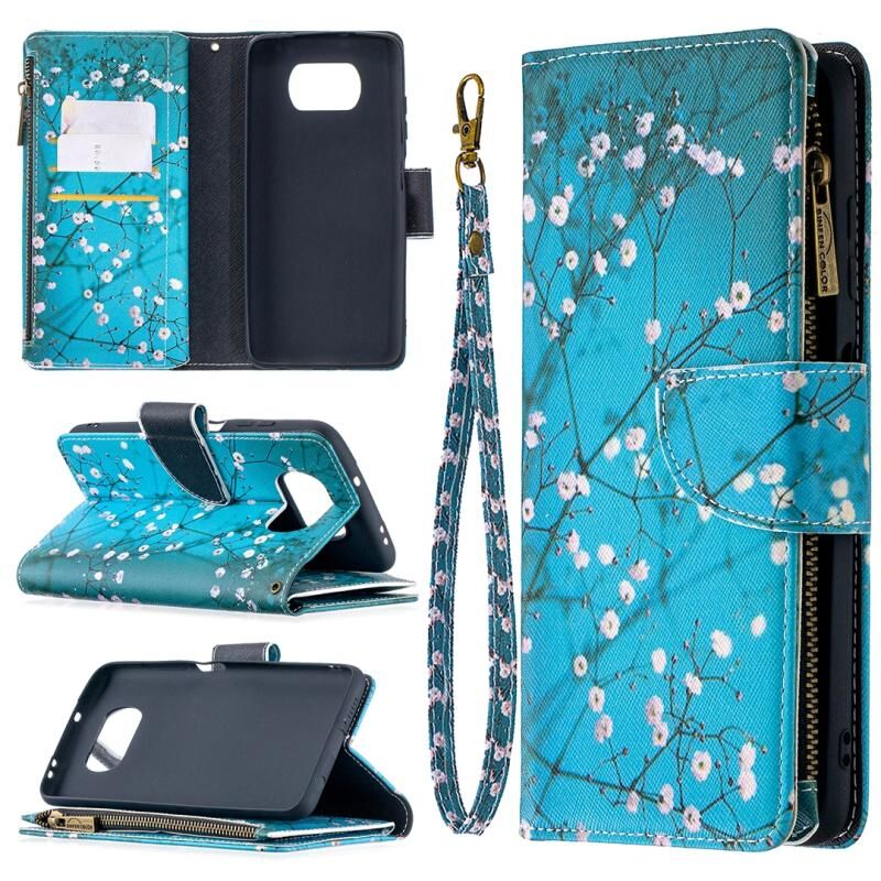 For Xiaomi Mi Poco X3 Colored Drawing Pattern Zipper Horizontal Flip Leather Case with Holder & Card Slots & Wallet(Plum Blossom)