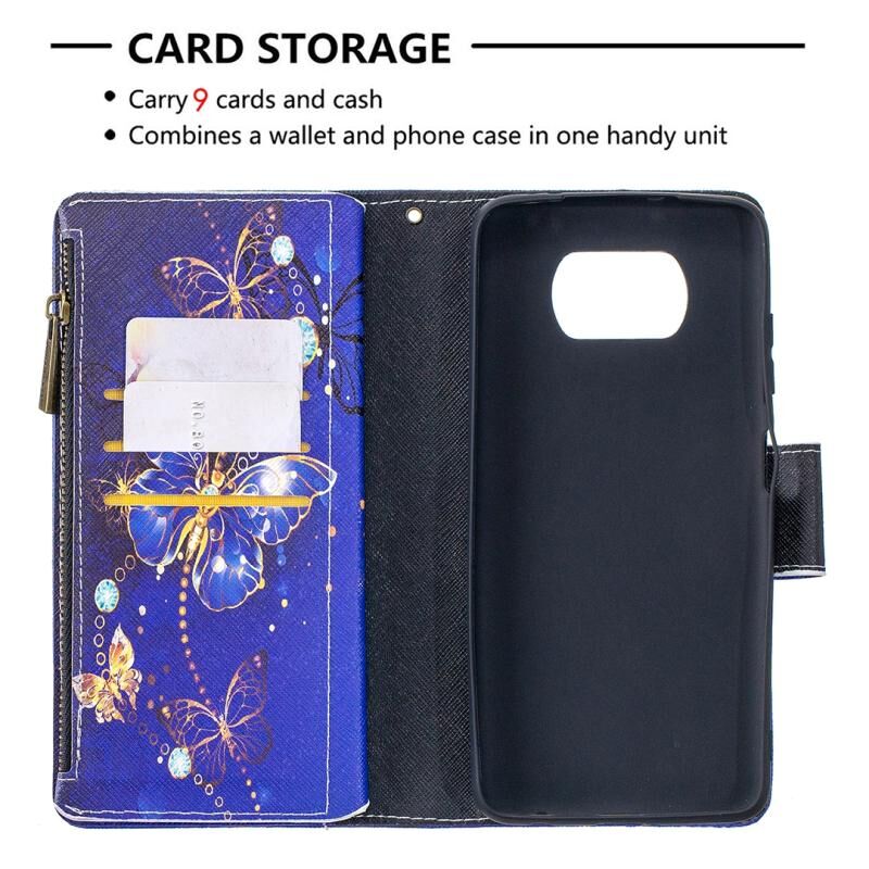 For Xiaomi Mi Poco X3 Colored Drawing Pattern Zipper Horizontal Flip Leather Case with Holder & Card Slots & Wallet(Purple Butterfly)