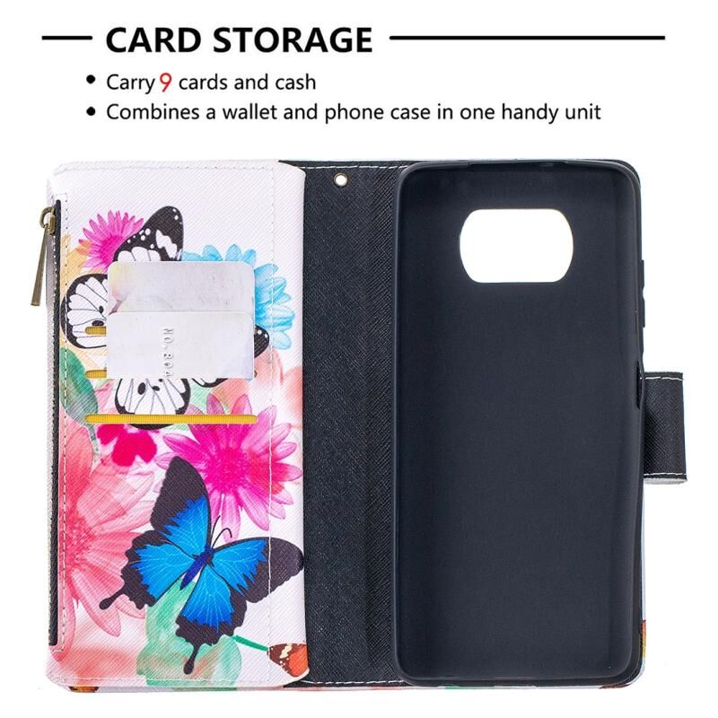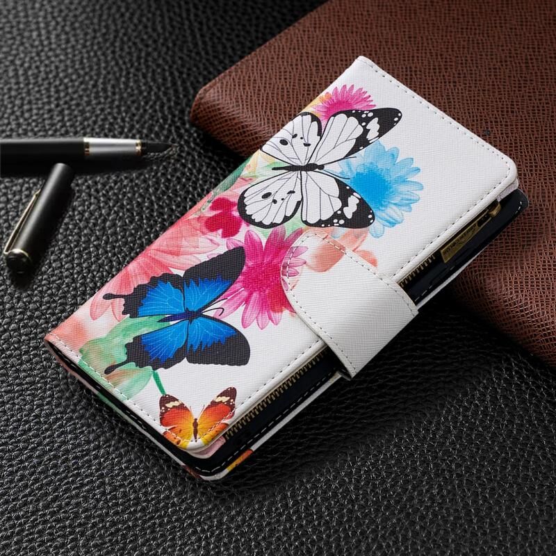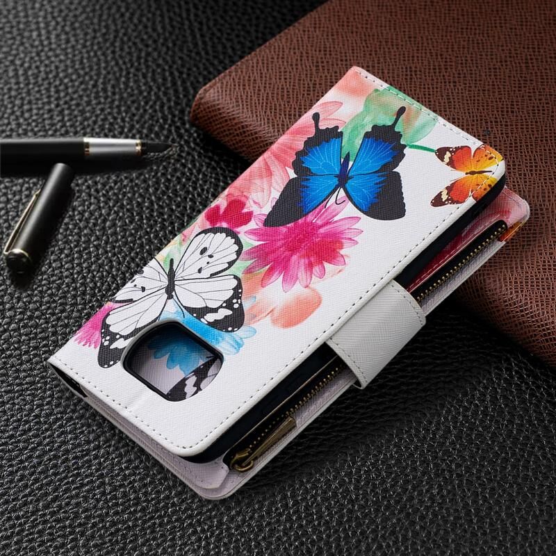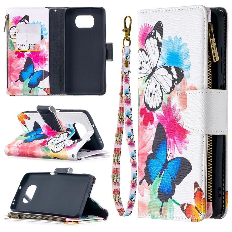 For Xiaomi Mi Poco X3 Colored Drawing Pattern Zipper Horizontal Flip Leather Case with Holder & Card Slots & Wallet(Two Butterflies)