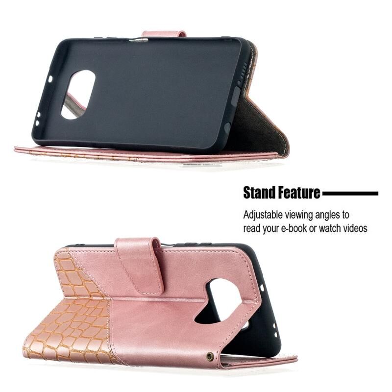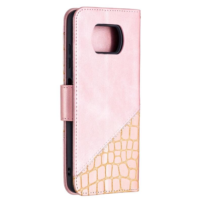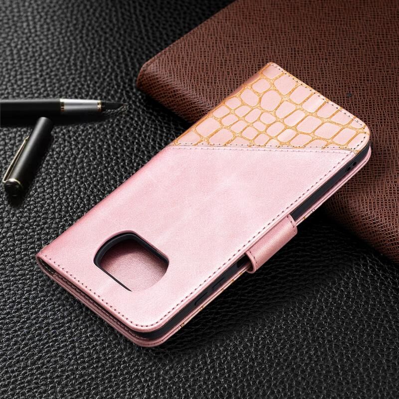 Θήκη για Xiaomi Mi Poco X3, με υφή κροκόδειλου, οριζόντια αναδιπλούμενη από δερματίνη PU, σε μαύρο χρώμα, με πορτοφόλι, βάση στήριξης και θήκες για κάρτες. (Ροζ χρυσός)