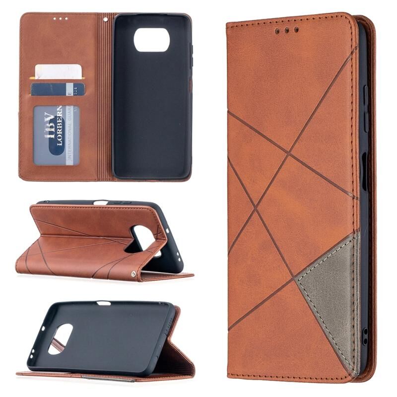 Για Xiaomi Mi Poco X3 Rhombus υφή Οριζόντια Flip μαγνητική δερμάτινη θήκη με θήκη & υποδοχές καρτών (καφέ)