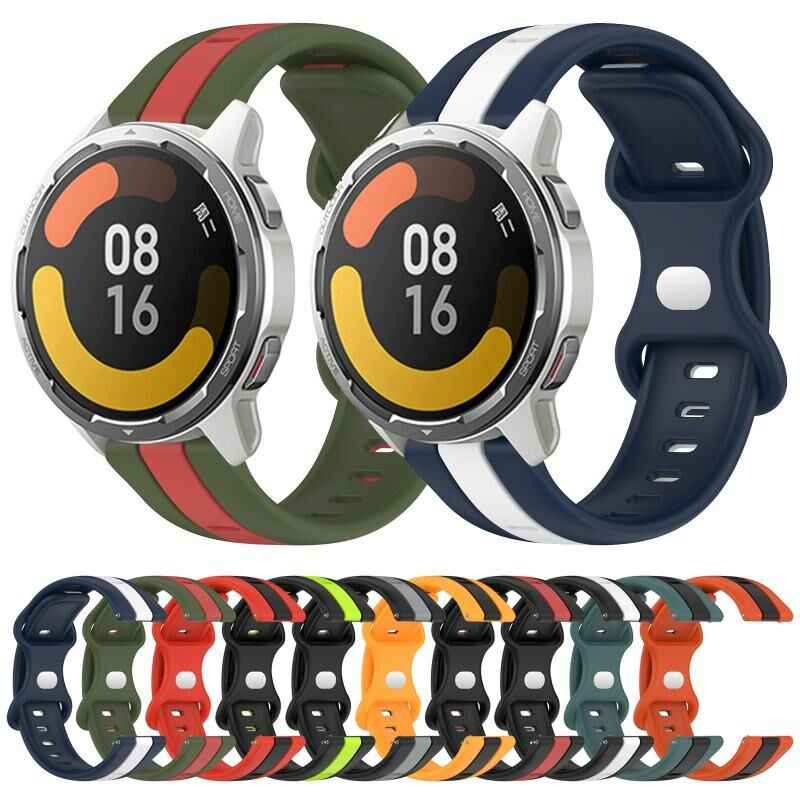 Για το Xiaomi MI Watch Color 2 22mm Butterfly Buckle Two-Color Silicone Watch Band(White+Blue)