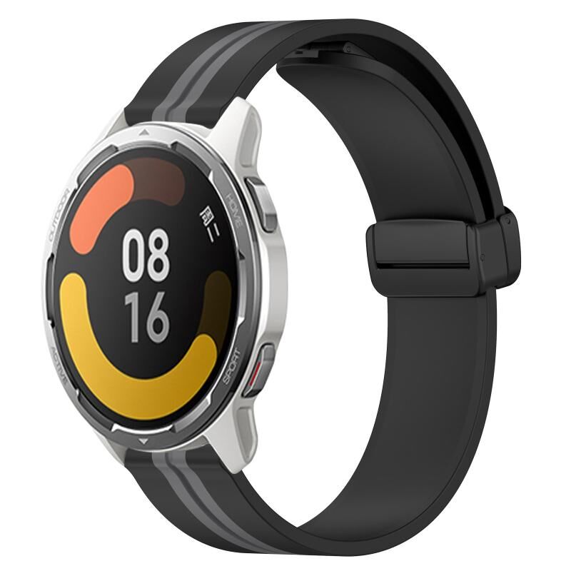 Για Xiaomi MI Watch Color 2 22mm Πτυσσόμενο μαγνητικό κούμπωμα ζώνη ρολογιού σιλικόνης (μαύρο + γκρι)