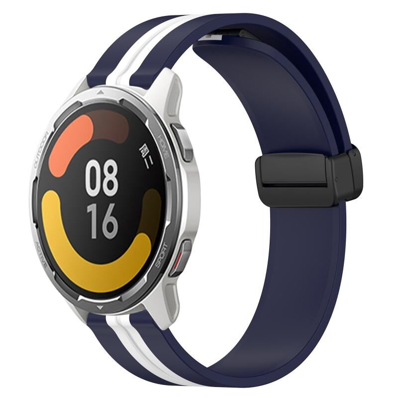 Για το Xiaomi MI Watch Color 2 22mm Πτυσσόμενο μαγνητικό κούμπωμα ζώνη ρολογιού σιλικόνης (Μπλε + Λευκό)