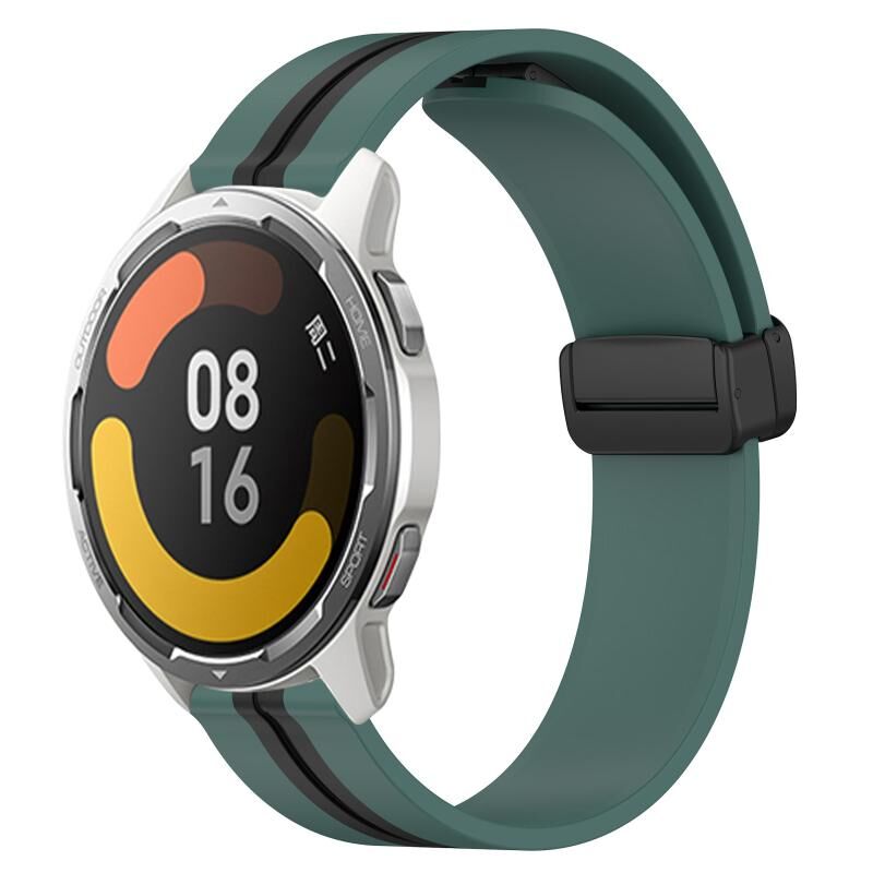 Για Xiaomi MI Watch Color 2 22mm Πτυσσόμενο μαγνητικό κούμπωμα ζώνη ρολογιού σιλικόνης (Olive Green + Black)