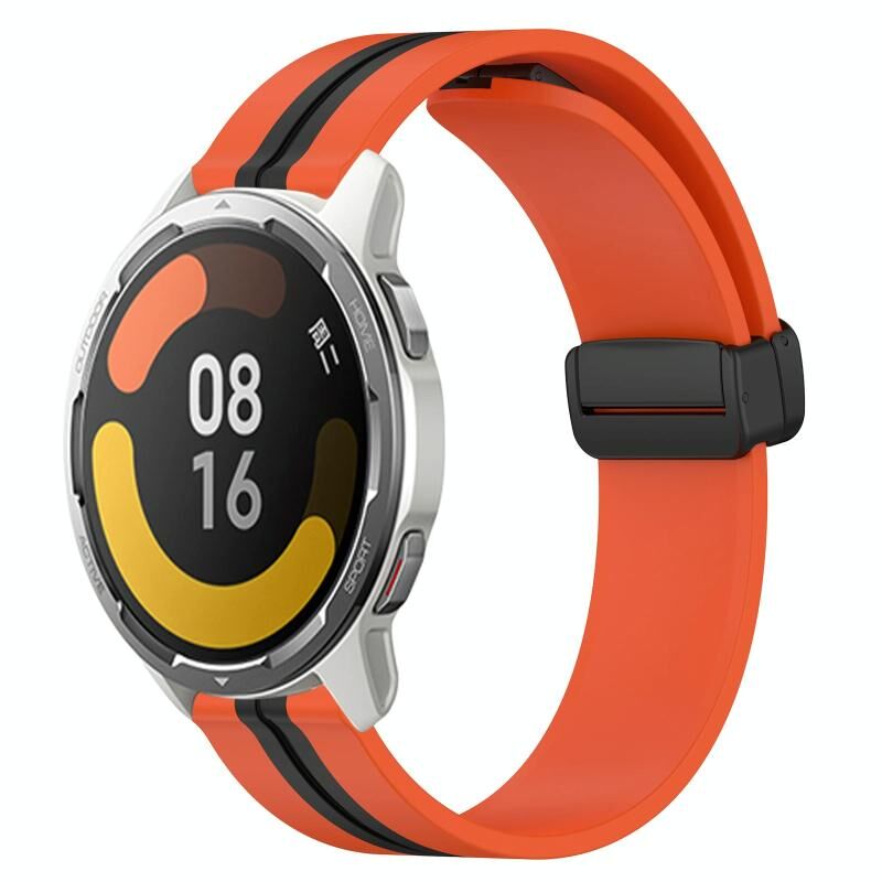 Για Xiaomi MI Watch Color 2 22mm Πτυσσόμενο μαγνητικό κούμπωμα ζώνη ρολογιού σιλικόνης (πορτοκαλί + μαύρο)