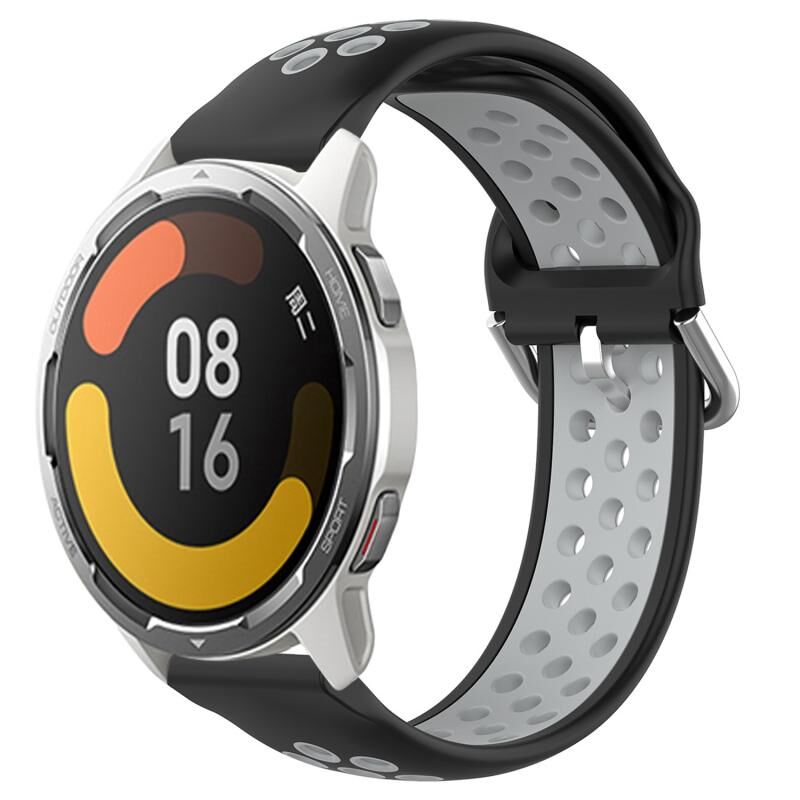 Για το Xiaomi MI Watch Color 2 22mm διάτρητη αναπνεύσιμη αθλητική ζώνη ρολογιού σιλικόνης (μαύρο + γκρι)