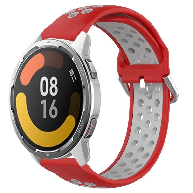 Για το Xiaomi MI Watch Color 2 22mm διάτρητη αναπνεύσιμη αθλητική ζώνη ρολογιού σιλικόνης (κόκκινο + γκρι)