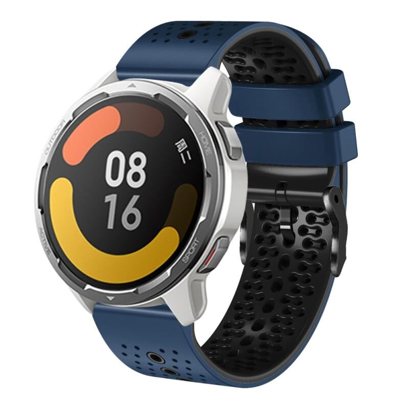 Για το Xiaomi MI Watch Color 2 22mm διάτρητη ζώνη ρολογιού σιλικόνης δύο χρωμάτων (Μπλε μεσάνυχτα + Μαύρο)