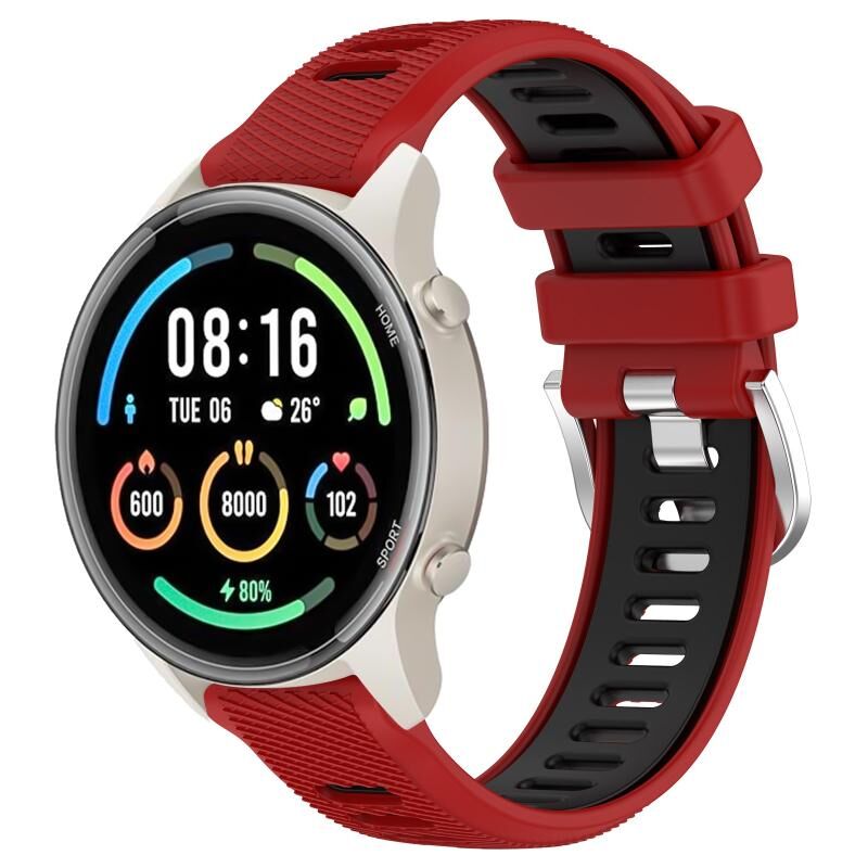 Για Xiaomi MI Watch Color 2 22mm Αθλητισμός Δύο χρώματα χάλυβα πόρπη σιλικόνης ρολόι μπάντα (κόκκινο + μαύρο)
