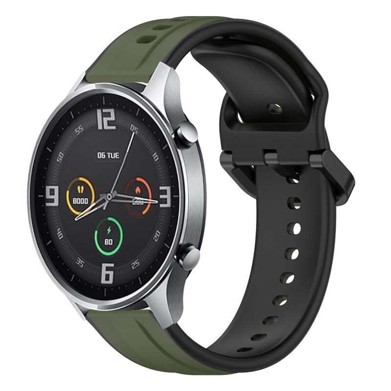 Για το Xiaomi MI Watch Color 22mm Convex Loop Two-Color Silicone Watch Band (σκούρο πράσινο + μαύρο)