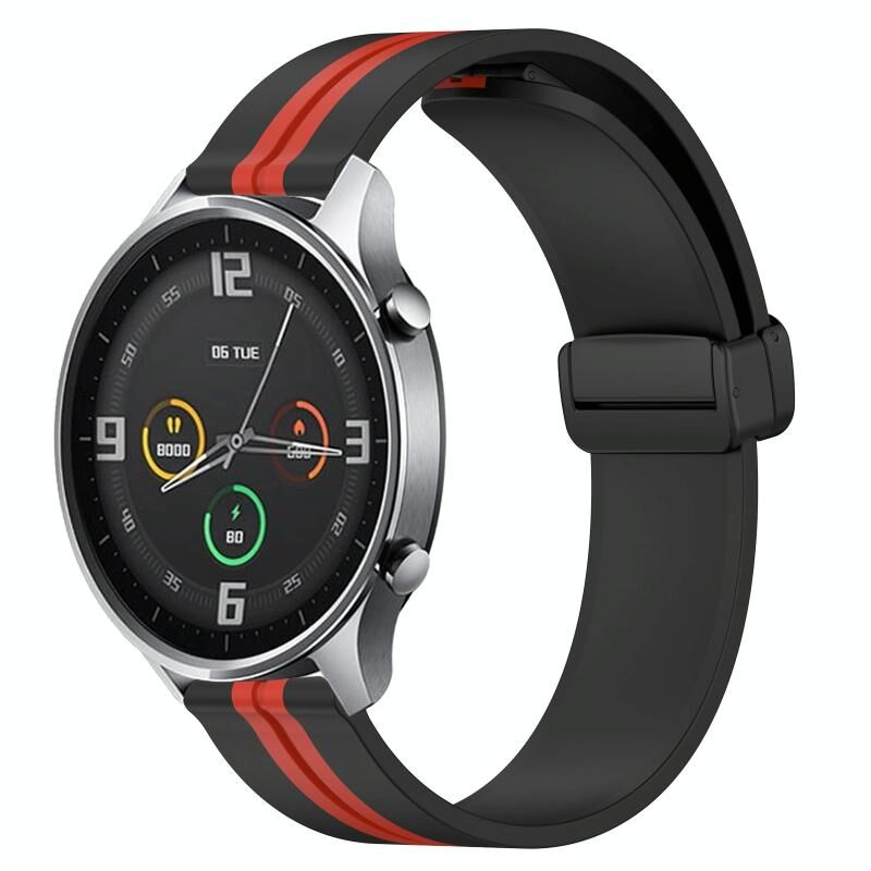 Για Xiaomi MI Watch Color 22mm Πτυσσόμενο μαγνητικό κούμπωμα ζώνη ρολογιού σιλικόνης (μαύρο + κόκκινο)