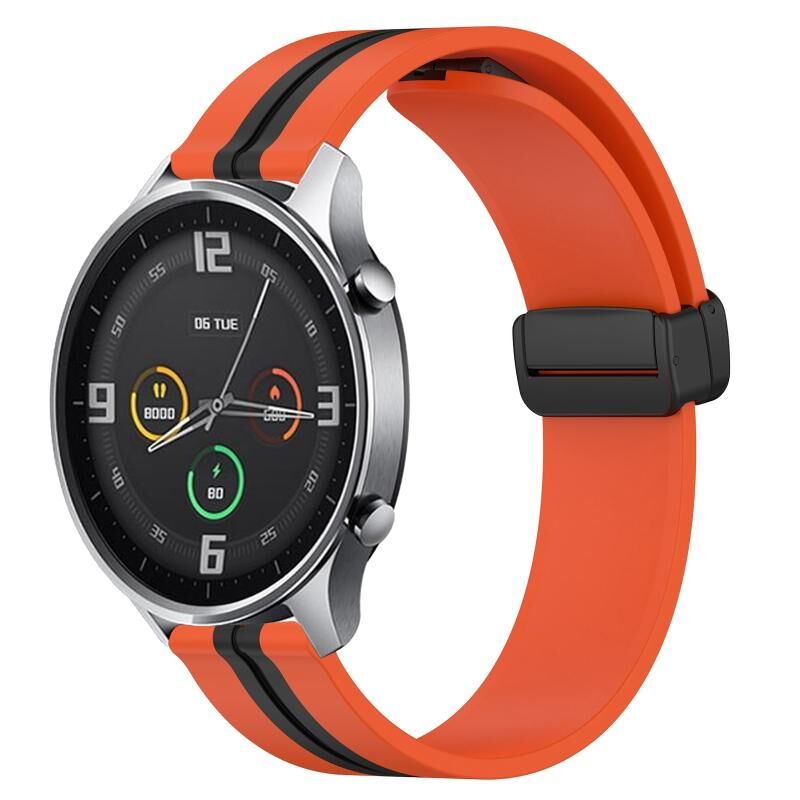 Για Xiaomi MI Watch Color 22mm Πτυσσόμενο μαγνητικό κούμπωμα ζώνη ρολογιού σιλικόνης (πορτοκαλί + μαύρο)