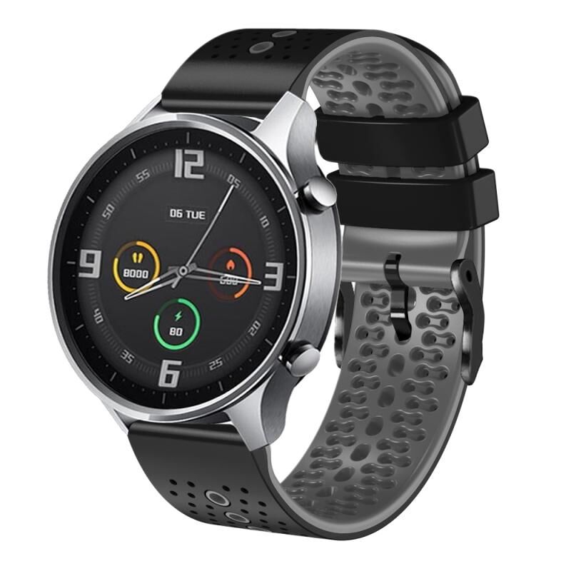 Για το Xiaomi MI Watch Color 22mm διάτρητη ζώνη ρολογιού σιλικόνης δύο χρωμάτων (μαύρο + γκρι)