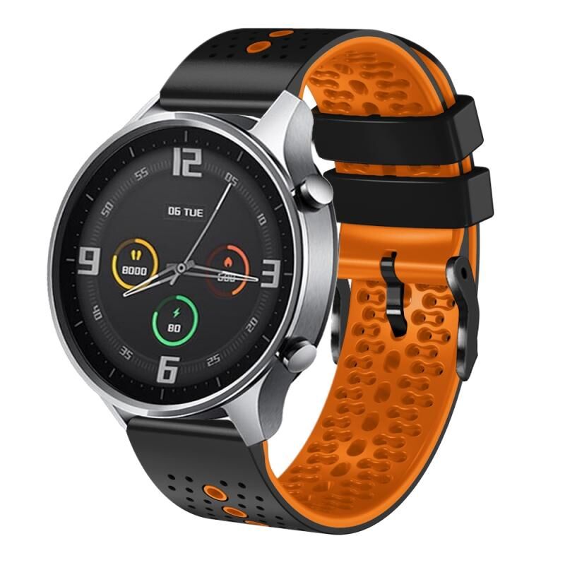 Για το Xiaomi MI Watch Color 22mm διάτρητη ζώνη ρολογιού σιλικόνης δύο χρωμάτων (μαύρο + πορτοκαλί)