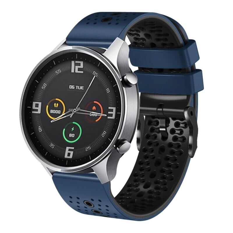 Για το Xiaomi MI Watch Color 22mm διάτρητη ζώνη ρολογιού σιλικόνης δύο χρωμάτων (Μπλε μεσάνυχτα + Μαύρο)