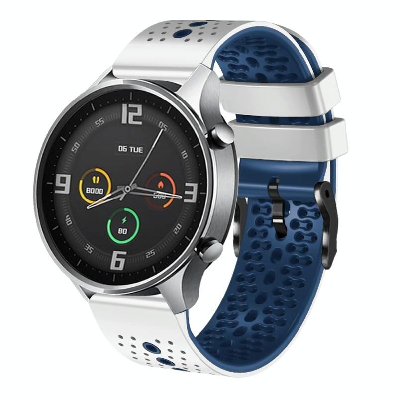 Για το Xiaomi MI Watch Color 22mm διάτρητη ζώνη ρολογιού σιλικόνης δύο χρωμάτων (λευκό + μπλε)
