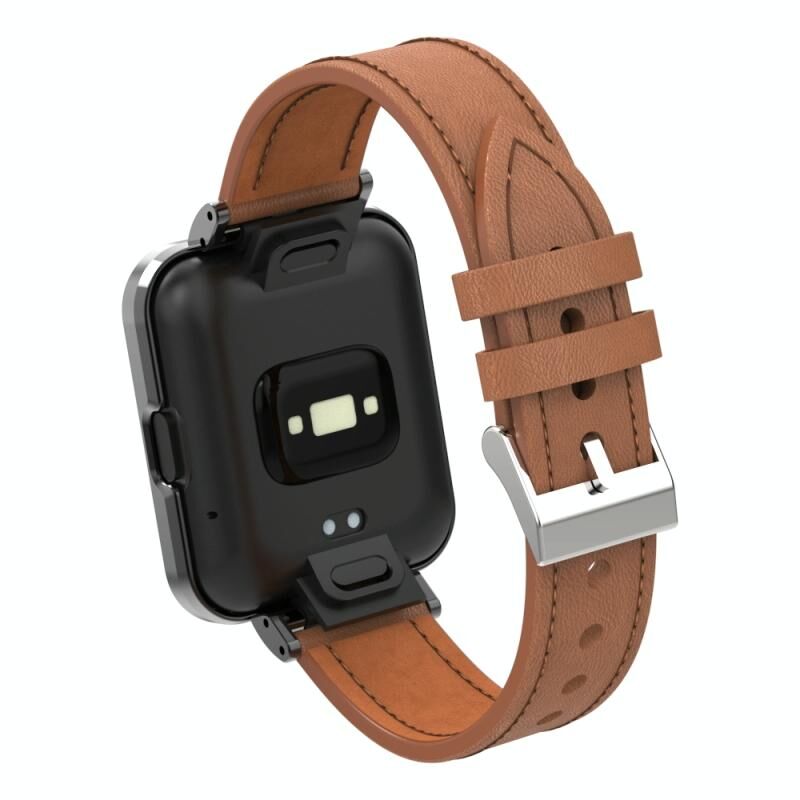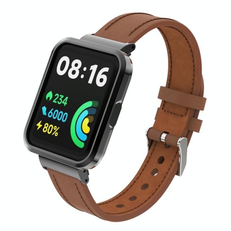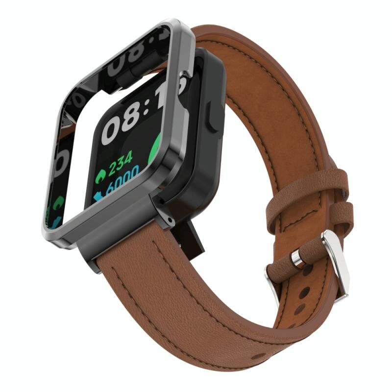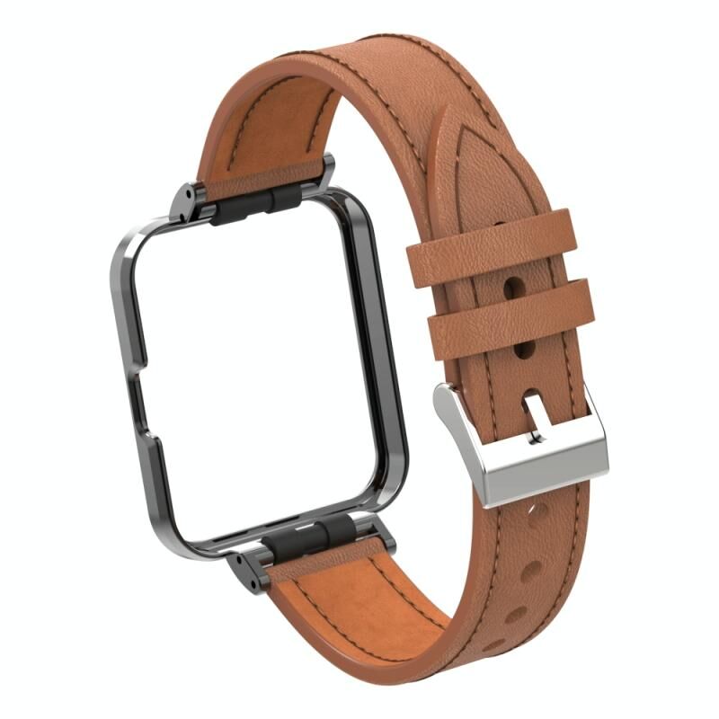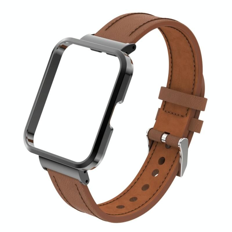 Για Xiaomi Mi Watch Lite / Redmi Watch Γνήσιο δέρμα Μεταλλική θήκη ενσωματωμένη ζώνη ρολογιού (καφέ)