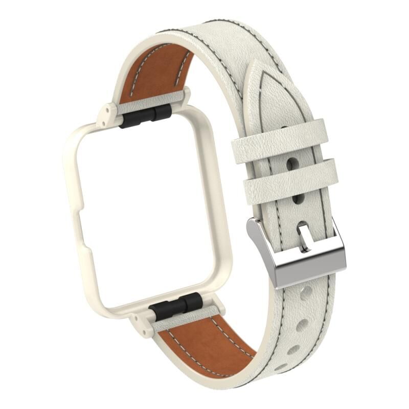 Για Xiaomi Mi Watch Lite / Redmi Watch Γνήσια δερμάτινη μεταλλική θήκη ενσωματωμένη ζώνη ρολογιού (ζεστό λευκό + ελεφαντόδοντο θήκη)