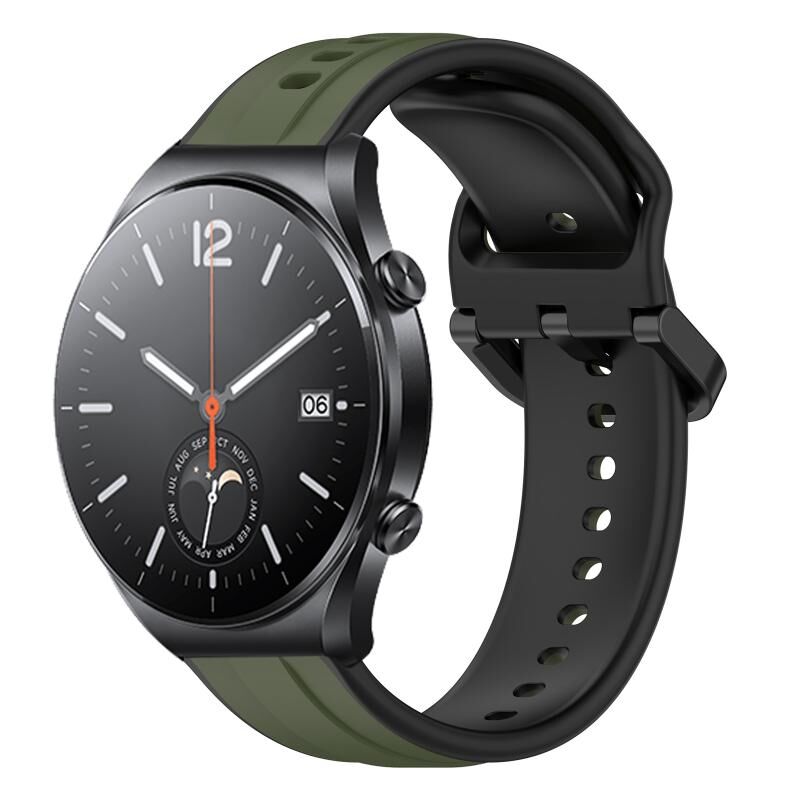 Για το Xiaomi MI Watch S1 22mm Convex Loop Two-Color Silicone Watch Band(Dark Green+Black)