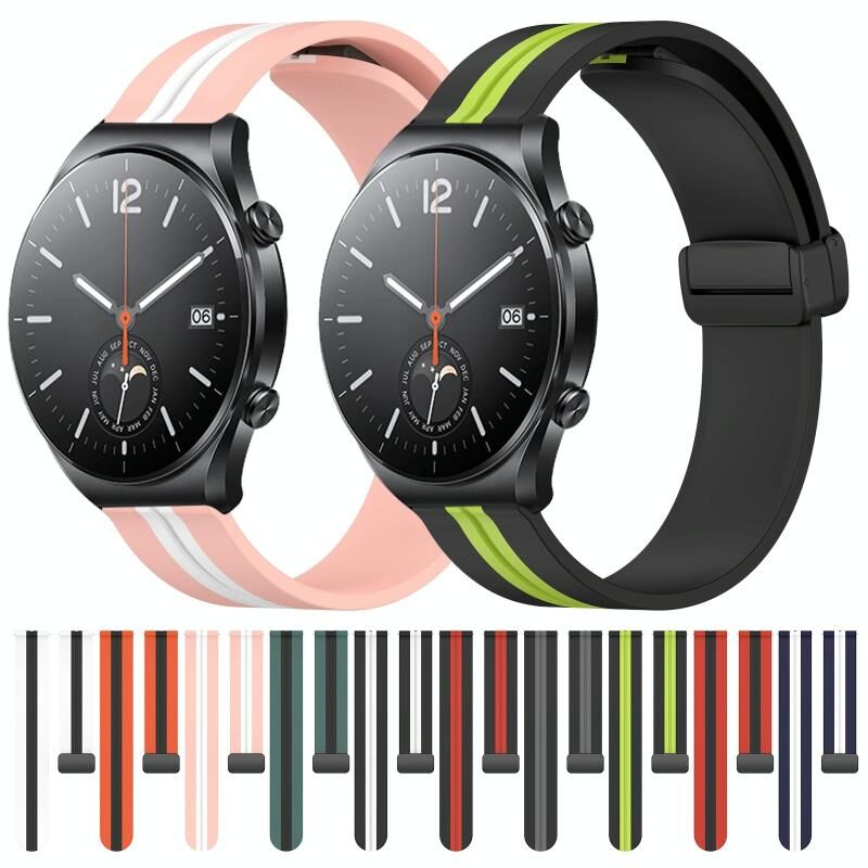 Για Xiaomi MI Watch S1 22mm Πτυσσόμενο μαγνητικό κούμπωμα ζώνη ρολογιού σιλικόνης (Μπλε + Λευκό)