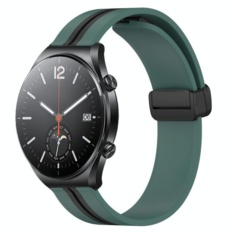 Για Xiaomi MI Watch S1 22mm Πτυσσόμενο μαγνητικό κούμπωμα ζώνη ρολογιού σιλικόνης (Olive Green + Μαύρο)