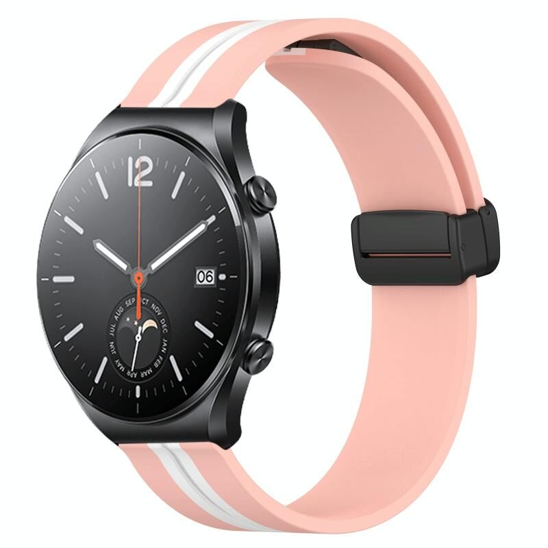 Για Xiaomi MI Watch S1 22mm Πτυσσόμενο μαγνητικό κούμπωμα ζώνη ρολογιού σιλικόνης (ροζ+λευκό)