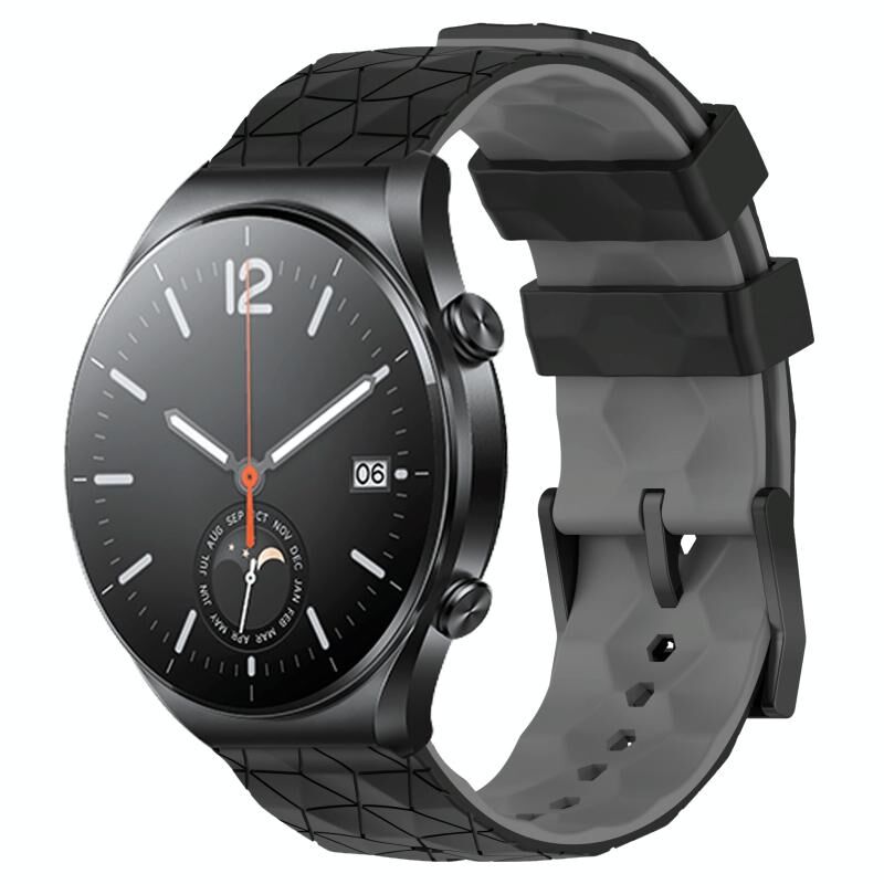 Για Xiaomi MI Watch S1 22mm ποδόσφαιρο μοτίβο δύο χρωμάτων σιλικόνης ρολόι μπάντα ρολόι (μαύρο + γκρι)