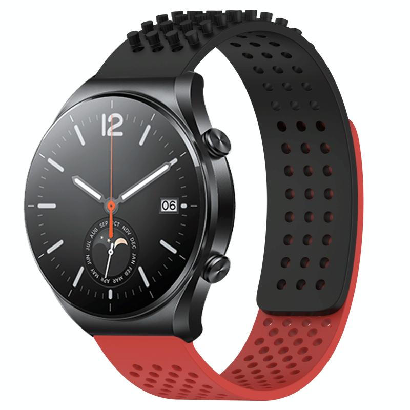 Λουράκι Σιλικόνης 22mm με 3D Σημεία για Xiaomi MI Watch S1 (Μαύρο+Κόκκινο)