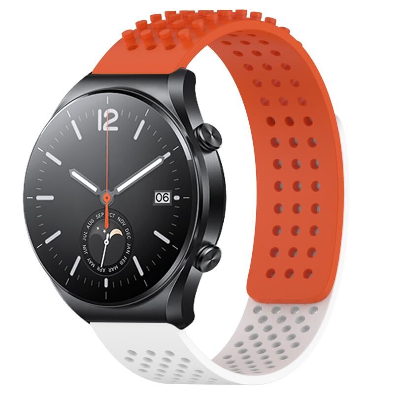Για Xiaomi MI Watch S1 22mm οπές αναπνεύσιμο 3D Dots σιλικόνης ρολόι μπάντα ρολόι (πορτοκαλί + λευκό)