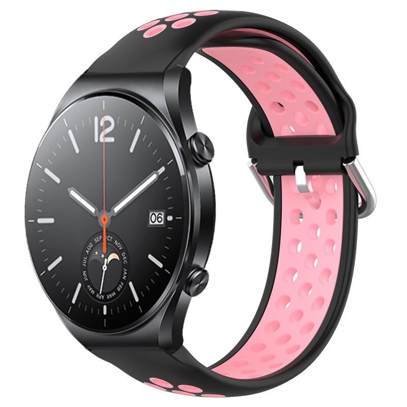 Για το Xiaomi MI Watch S1 22mm διάτρητη αναπνεύσιμη αθλητική ζώνη ρολογιού σιλικόνης (μαύρο + ροζ)