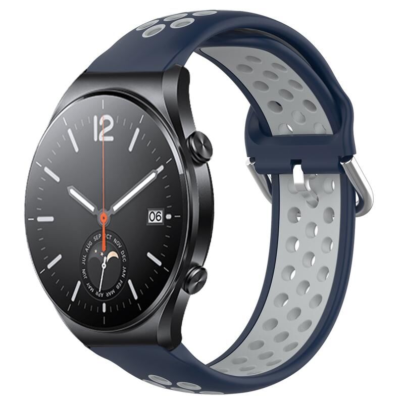 Για το Xiaomi MI Watch S1 22mm διάτρητη αναπνεύσιμη αθλητική ζώνη ρολογιού σιλικόνης (Μπλε μεσάνυχτα + γκρι)