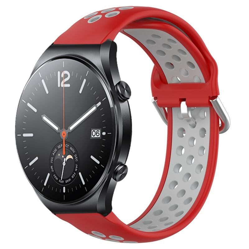 Για το Xiaomi MI Watch S1 22mm διάτρητη αναπνεύσιμη αθλητική ζώνη ρολογιού σιλικόνης (κόκκινο + γκρι)