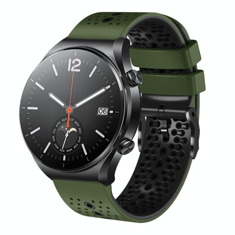 Για το Xiaomi MI Watch S1 22mm διάτρητη ζώνη ρολογιού σιλικόνης δύο χρωμάτων (πράσινο στρατού + μαύρο)