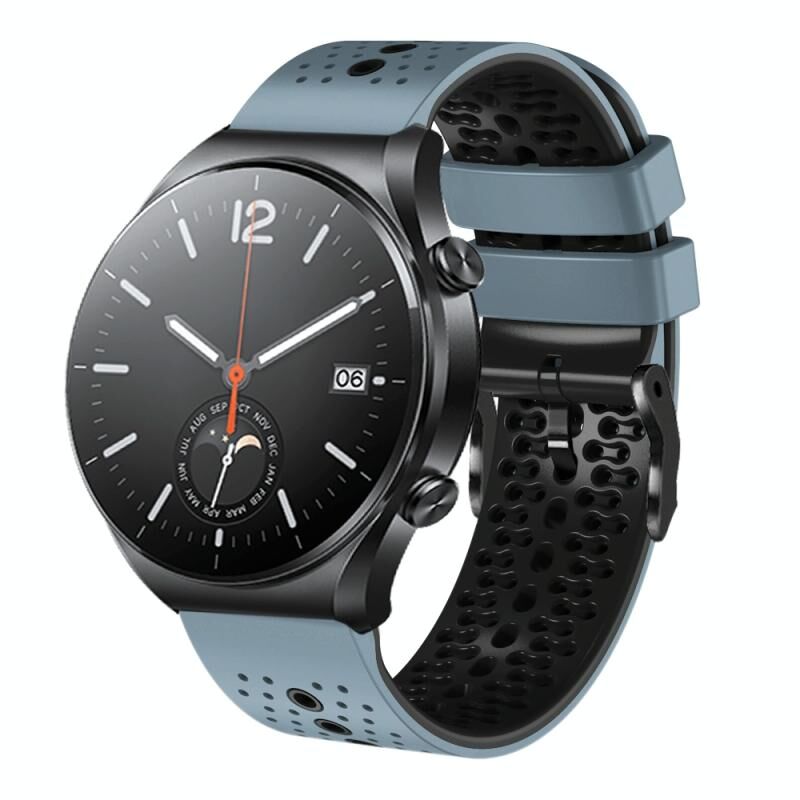 Για το Xiaomi MI Watch S1 22mm διάτρητη ζώνη ρολογιού σιλικόνης δύο χρωμάτων (μπλε+μαύρο)